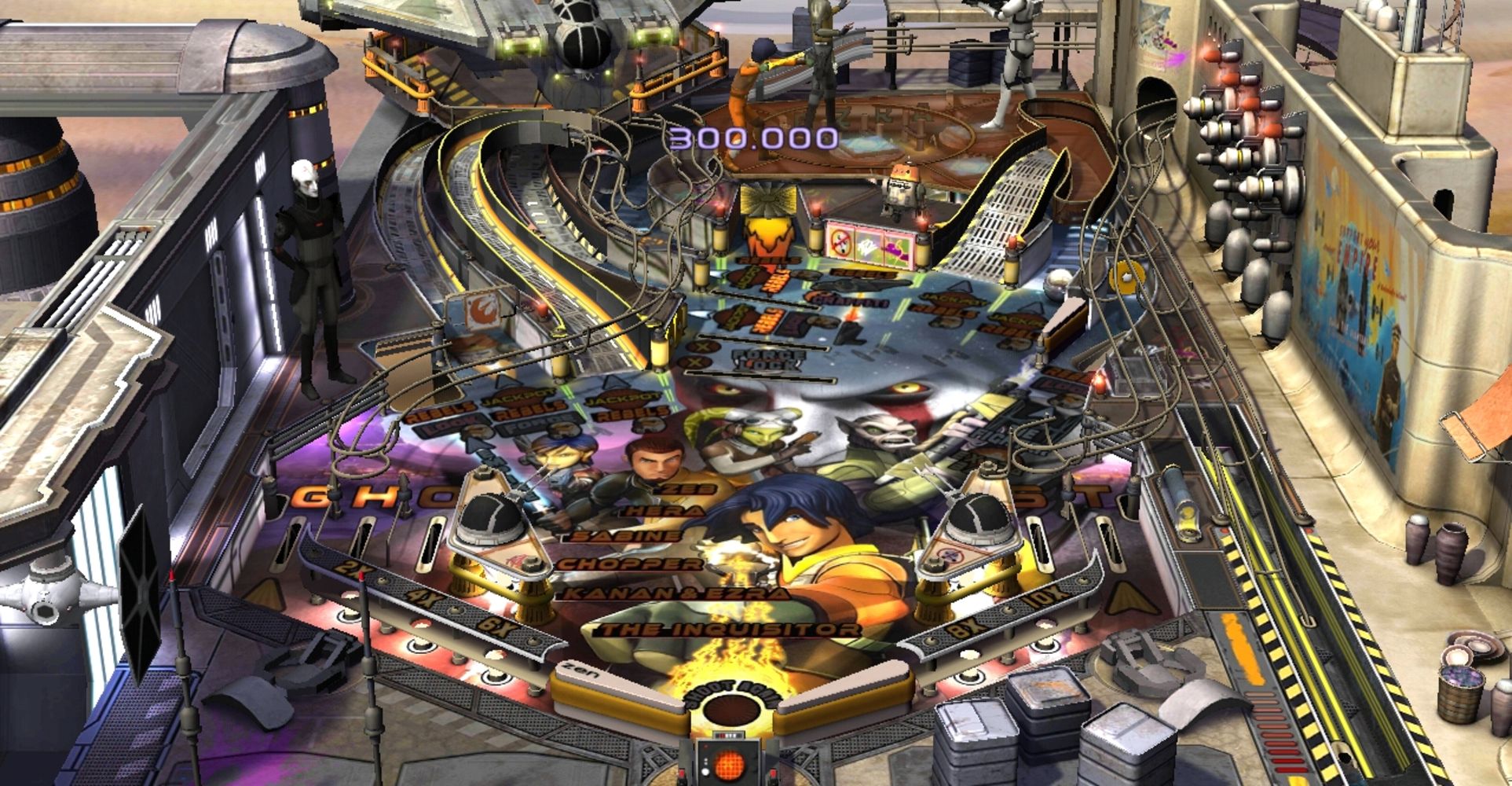 - Art Attack: Based on the second prelude short used to promote the series, this mission follows Sabine's efforts to outwit stormtroopers while using explosives to draw Imperial forces away and allow the Ghost to escape. To help her create the diversion needed, the player must set and detonate three bombs within a time limit. A bomb can be set up by shooting any of a few lit lanes, but the number of lanes that need to be hit will depend on which bomb is being set (1 for the first, 2 for the second or 3 for the third). After a bomb is set up, the player must detonate the bomb by hitting the saucer on the right side of the table, which must be done before any more bombs are set, as only one bomb can be set and detonated at a time.